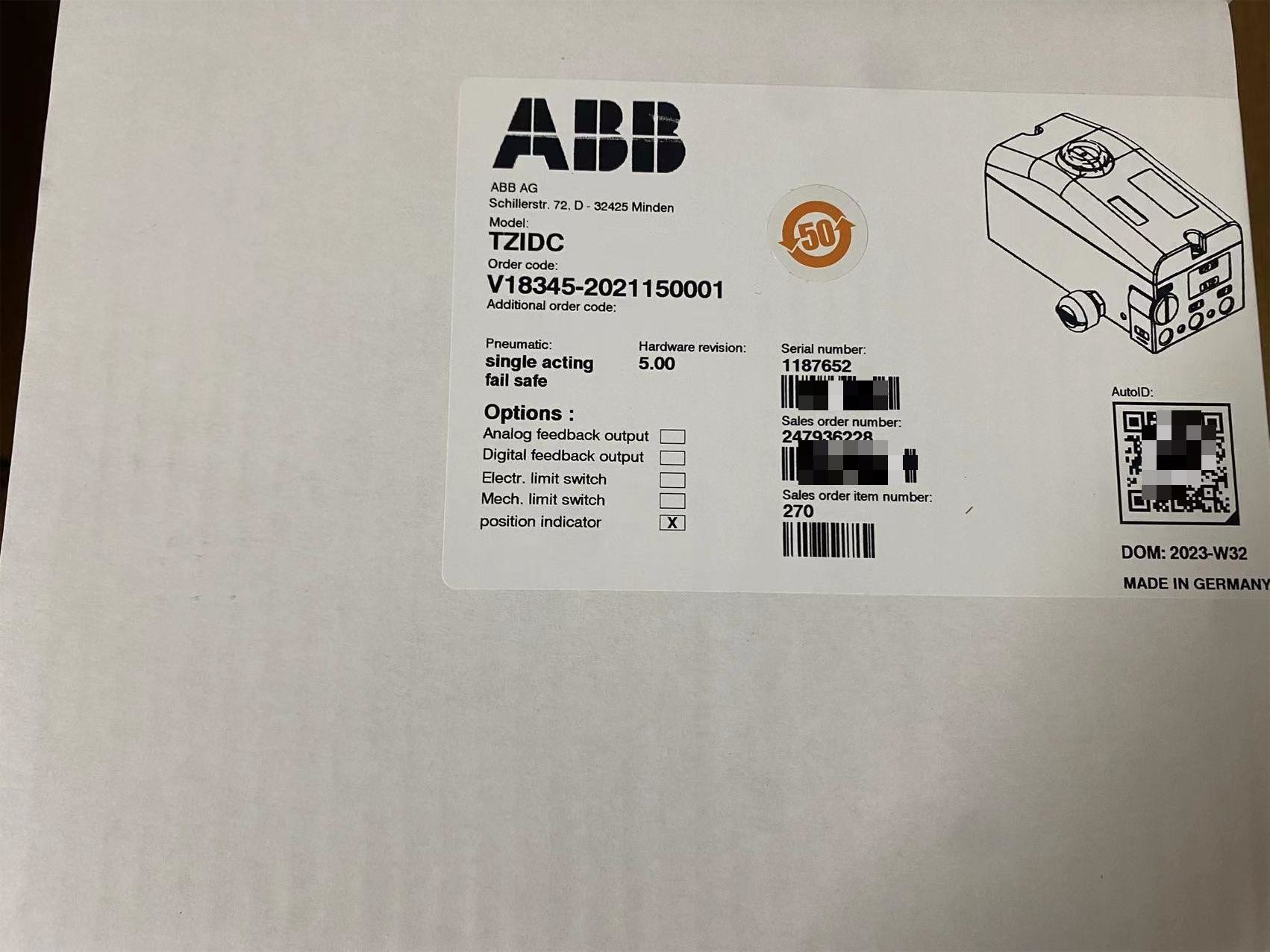| Mettre en évidence: | Positionneur CE,ABB positionneur de tzidc,V18345-2021150001 |
