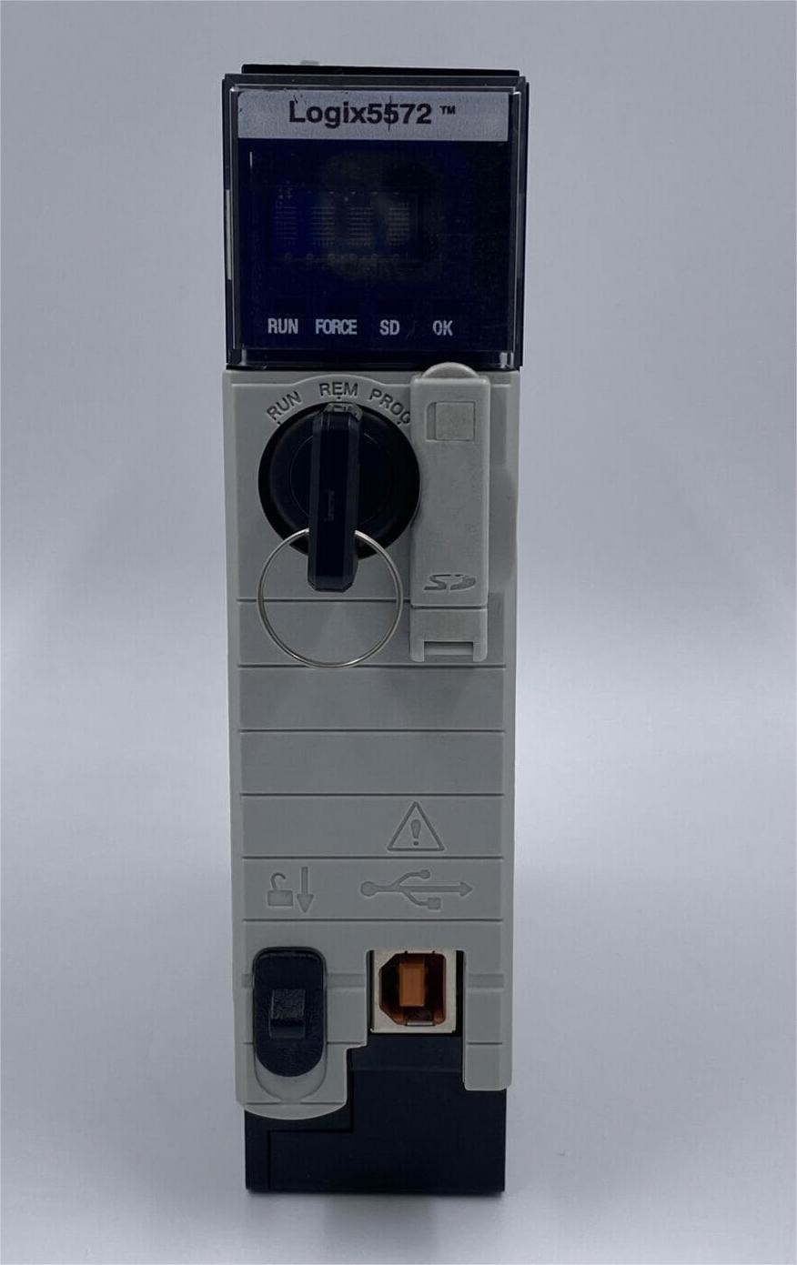 The AB 1756-L72 is a ControlLogix Series Programmable Automation Controller (PAC) with 4 MB user memory for data and logic and 0.98 MB I/O memory. The controller includes a 1 GB SD card (1784-SD1) for optional nonvolatile memory storage, upgradable to 2 GB via the 1784-SD2 card.